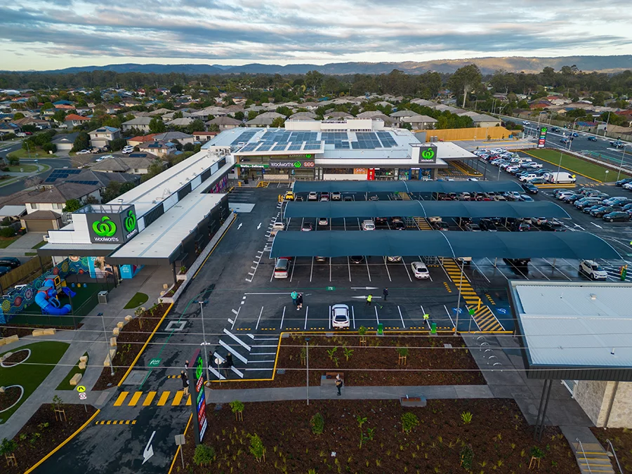 Warbu Bellmere Shopping Centre was constructed to a 4-Star Green Star development rating, rated by the Green Building Council of Australia, with more than 500 solar panels that will offset 20% of the supermarkets’ electricity usage.